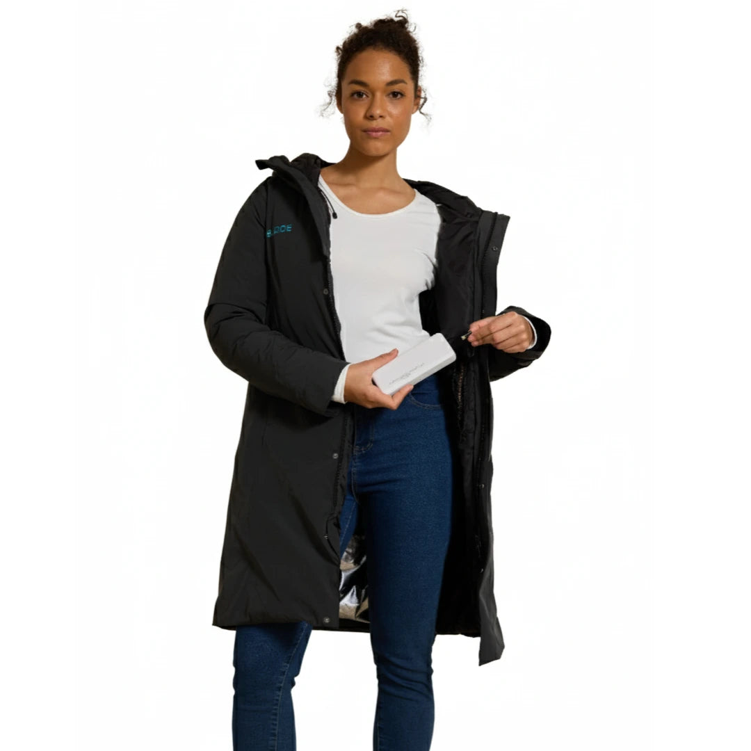 Pølar Wärmste beheizte Damen-Parkajacke Schwarz